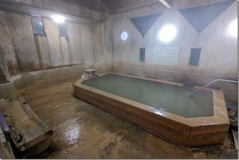浴槽に入ってしまえば見えませんし。お湯は豊富で、加水、加温なしで、がんがんに掛け流しです。